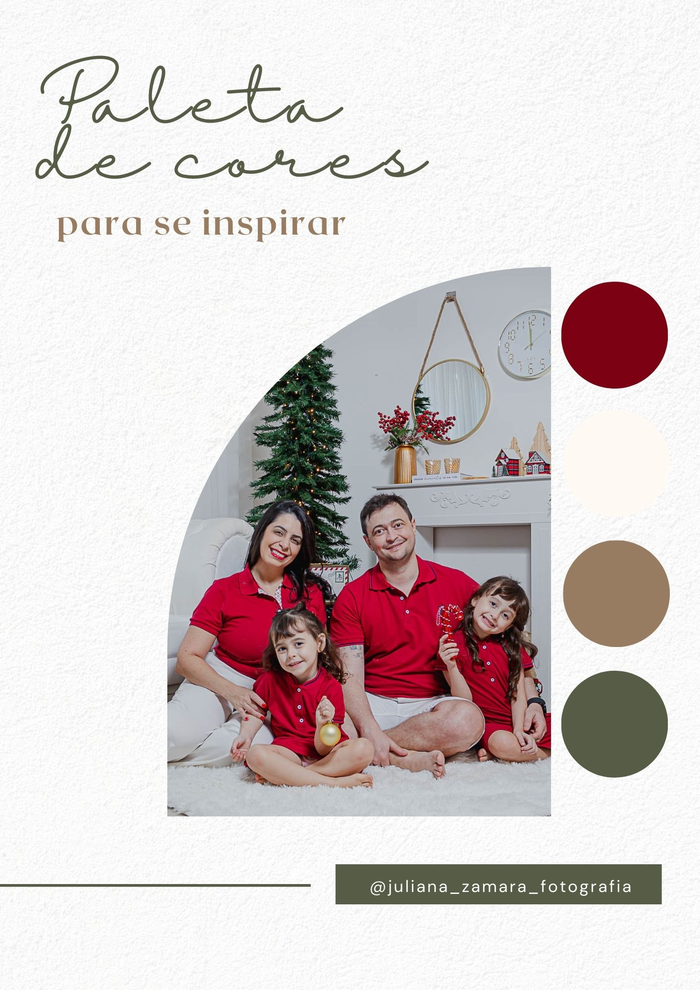 Caso fique em dúvida sobre o que vestir eu acredito que quanto mais atemporal for o look, melhor! Então pensem em cores semelhantes as sugeridas na paleta de cores, elas trarão o clima de natal que é tão gostoso de eternizar em imagens.