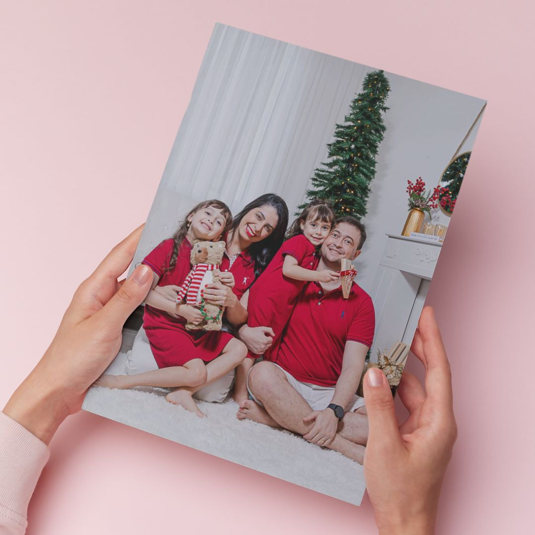 As fotos são impressas no próprio corpo do álbum, trazendo sofisticação e personalidade ao projeto.